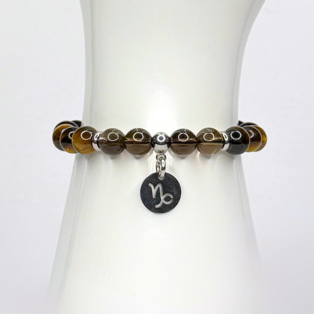 Honor the grounded, disciplined, and resilient nature of Capricorn with this handcrafted bracelet, designed with a strong and earthy combination of natural stones: Black Onyx, Tiger’s Eye, and Smoky Quartz. Each stone complements Capricorn’s practical mindset, inner strength, and steady approach to life.
