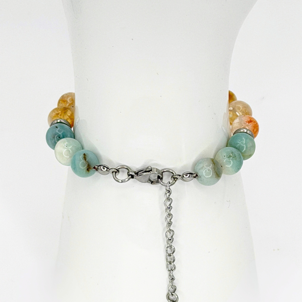 GEMINI ENERGY - AMAZONITE, CITRINE, AND LABRADORITE NATURAL STONE BEADS, LOBSTER CLASP + 2 IN. EXTENDER CHAIN STAINLESS STEEL